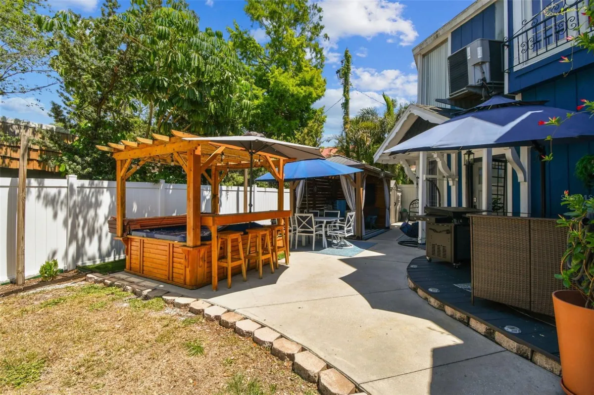 Outdoors, relax and entertain with a summer kitchen, hot tub & gazebo bar, covered dining & TV lounge, plus a spacious fenced yard with room for a pool.