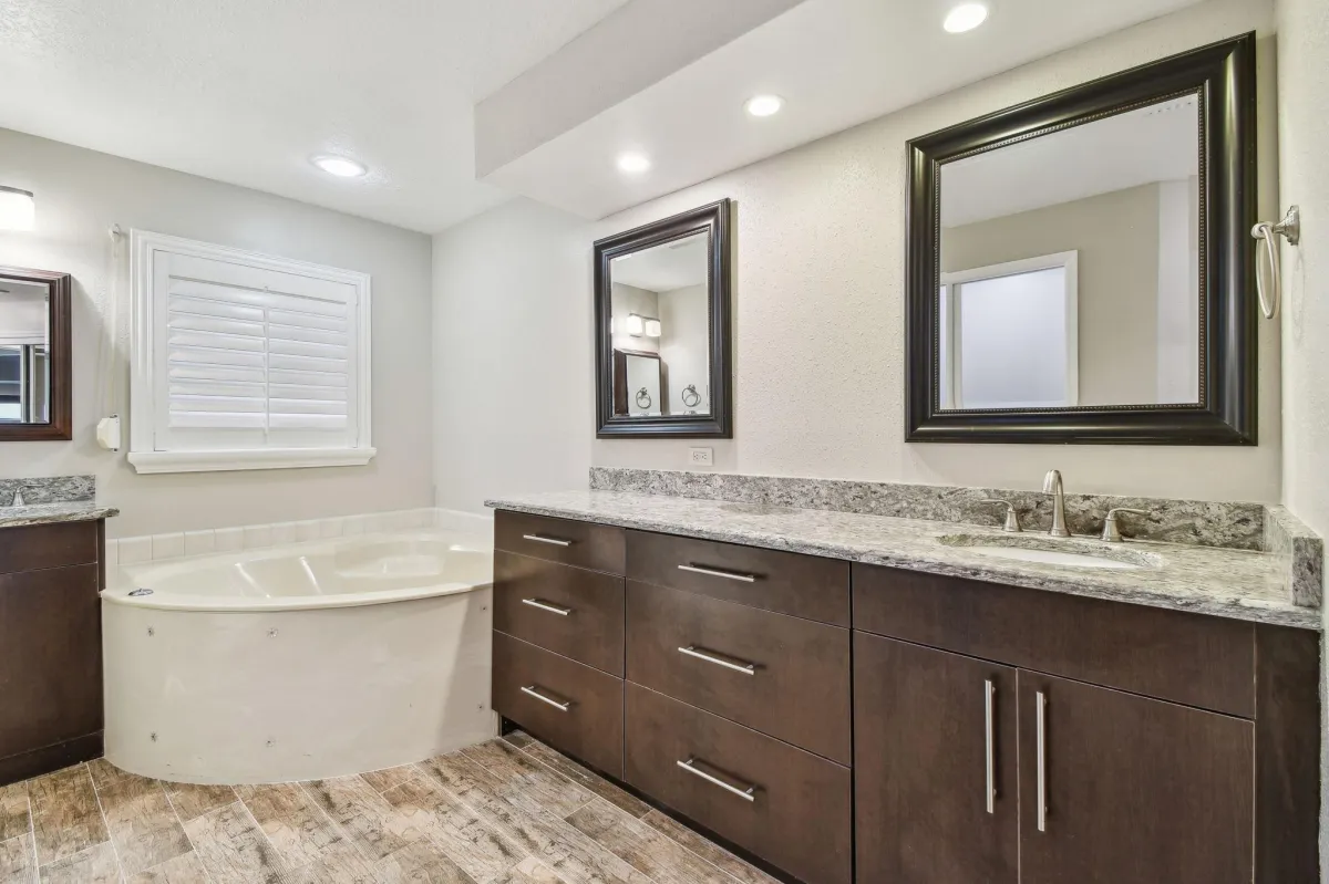 Spacious primary suite with dual vanities, jacuzzi tub, shower & bonus flex room (ideal office/nursery)